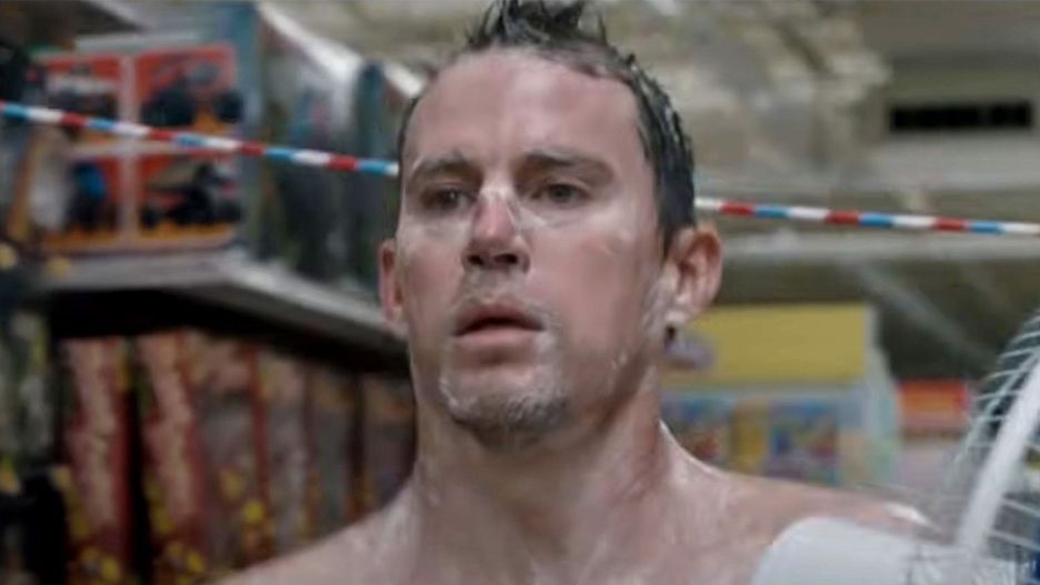 W tej scenie menedżer sklepu, którego gra Peter Dinklage, nakrywa bohatera granego przez Tatuma, gdy ten bierze prysznic. Całkowicie nagi mężczyzna ucieka przez sklep, potykając się o różne przedmioty, po czym wspina się na ścianę, próbując się schować. - Rzeczywiście doznałem urazu, kiedy wskakiwałem na stojak rowerowy, a potem próbowałem wykonać komiczny skok do mojej kryjówki - wspominał Tatum. - Nie przeskoczyłem krawędzi i rozciąłem nogę. Blizna nadal tam jest, musieliśmy ją opatrzyć i kontynuować nagranie.