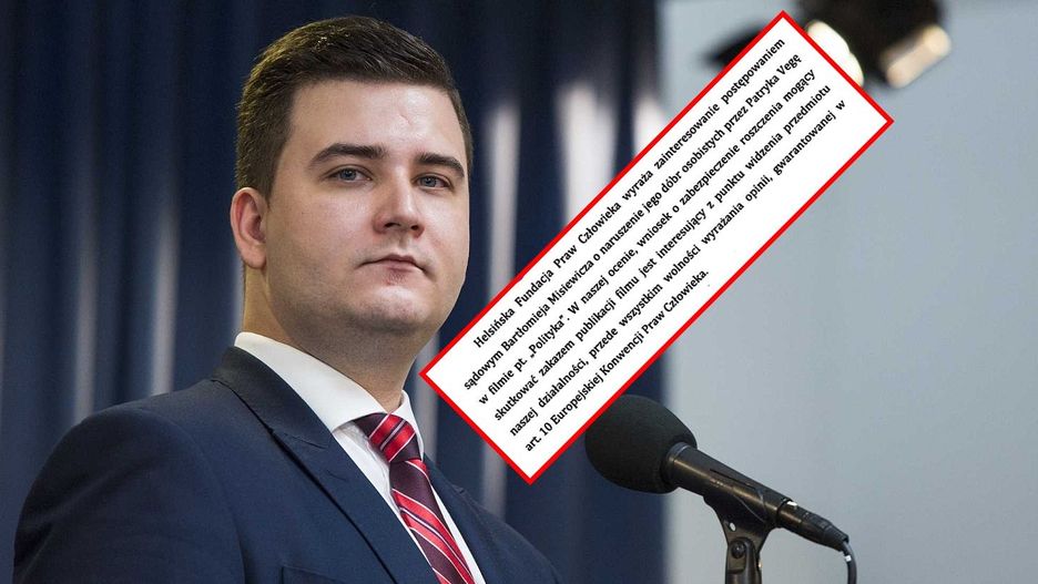 Szanowny Panie Mecenasie, Helsińska Fundacja Praw Człowieka wyraża zainteresowanie postępowaniem sądowym Bartłomieja Misiewicza o naruszenie jego dóbr osobistych przez Patryka Vegę w filmie pt. "Polityka". W naszej ocenie wniosek o zabezpieczenie roszczenia mogący skutkować zakazem publikacji filmu, jest interesujący z punktu widzenia przedmiotu naszej działalności - przede wszystkim wolności wyrażania opinii, gwarantowanej w art. 10 Europejskiej Komisji Praw Człowieka.