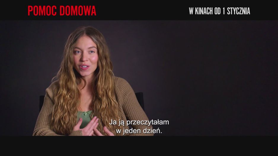 - Opisałabym "Pomoc domową" jako thriller psychologiczny. O podstępie, zaufaniu i miłości. Millie chce zacząć wszystko od nowa, a odkrywa mroczne, rodzinne sekrety. Uważam, że powieść Freidy "Pomoc domowa" przemawia do wielu ludzi, ponieważ łatwo można utożsamić się z bohaterami, ale też odnosi się do lęków, które są w nas. Czytelnik siedzi na krawędzi fotela, dopóki nie dokończy tej książki - mówi Sydney w wywiadzie, odnosząc się do popularnej książki, na podstawie której powstał scenariusz filmu.
